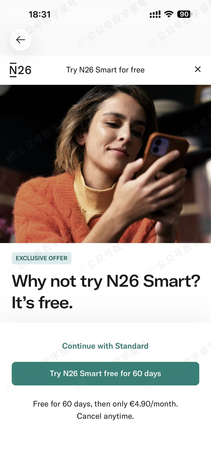 N26 Bank SE(原Number26),2013年创立于德国柏林,是欧洲头部的线上数字银行,持有德国BaFin与欧洲央行颁发的全银行牌照,资金可享受最高10 万欧元的德国存款保障,办理后可获得“DE”开头的德国个人iban账户。